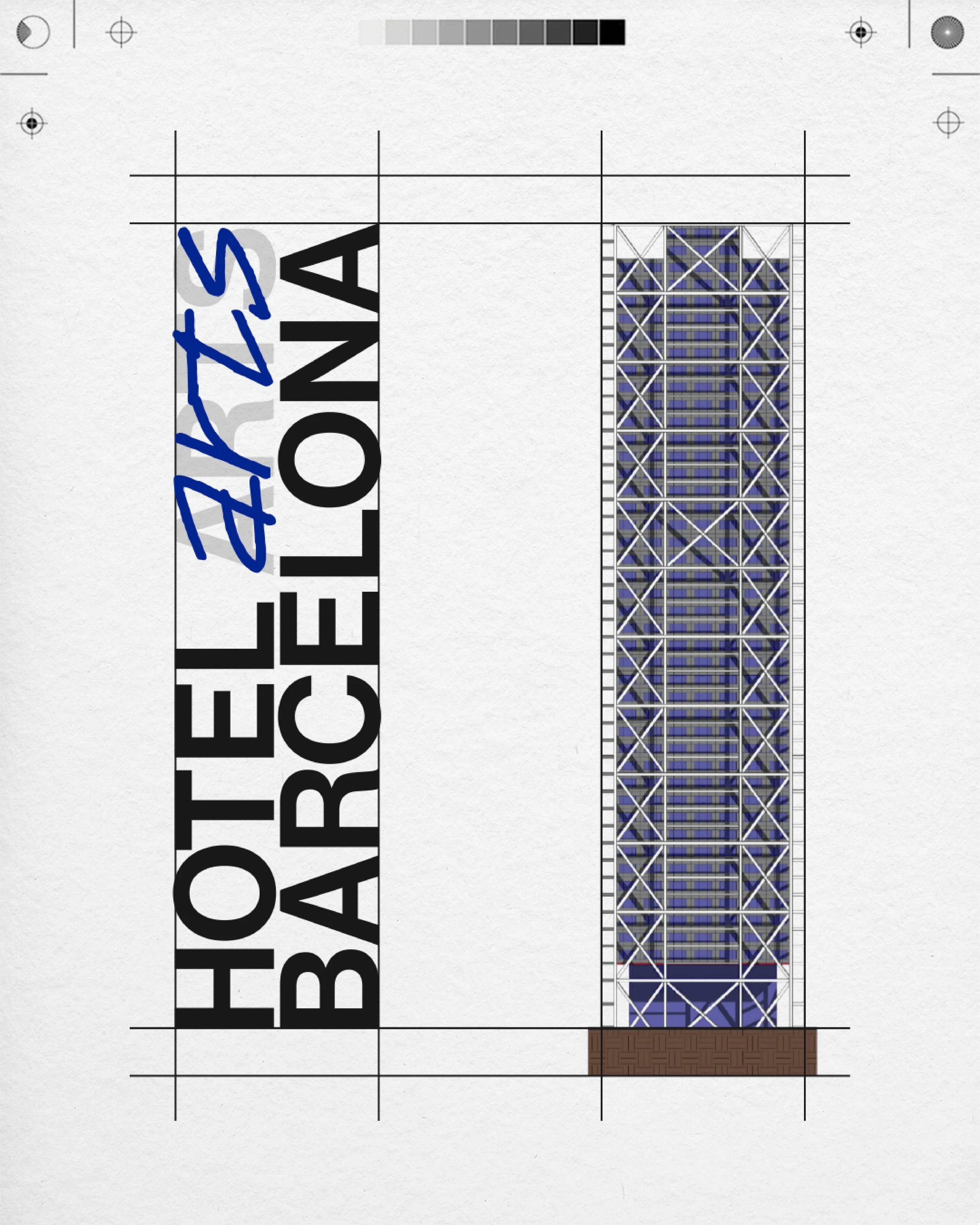 In 2023 I was commissioned by @matterofform , a London based luxury brand and digital agency, to work the rebranding proposal for the iconic @hotelartsbarcelona . The hotel was in the process of reimagining their visual presence and required design concepts for a refreshed identity. The iconic building is the tallest in the city and is easily recognised amongst the skyline. With its distinctive Pompidou grid-like structure it echoes the same design principles as major art institutions across the world. Inspired directly by the proportions of the building and the architectural philosophy behind Bruce Grahams monumental project we aimed to develop a flexible identity system which pays homage to this iconic member of the Barcelona skyline.Celebrating the history and heritage of the iconic hotel we incorporated the hand drawn script featured in the previous branding, juxtaposed with the sans-serif simple block form. This simple block form is a blank canvas with the ability for a multitude of branding expressions to be played with, while retaining consistency and recognisability always. The result is an identity which celebrates the hotels past while looking to the future.